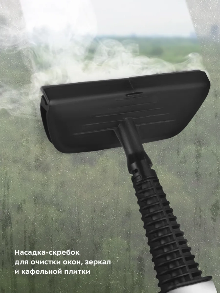 Чтобы помыть окна, зеркала и кафельную плитку присоедините к парогенератору насадку для отпаривания со скребком для стекла и прибор можно будет использовать, как стеклоочиститель.