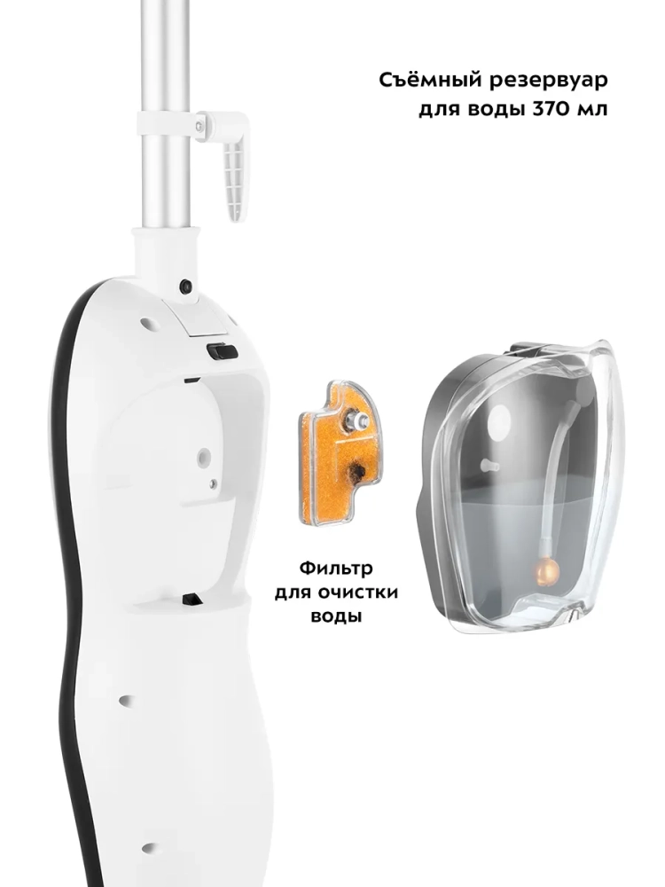 Если отсоединить ручку и щетку, то парогенератор превращается в ручной пароочиститель.