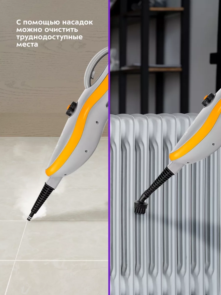 Если отсоединить ручку и щетку, то парогенератор превращается в ручной пароочиститель.