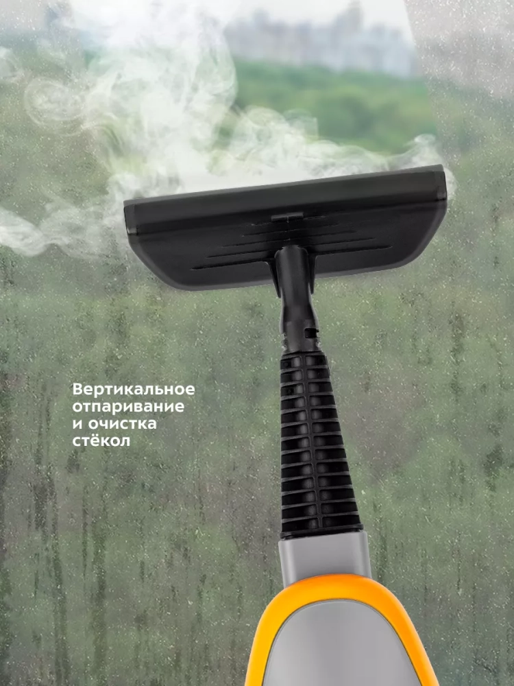 Чтобы помыть окна, зеркала и кафельную плитку присоедините к парогенератору насадку для отпаривания со скребком для стекла и прибор можно будет использовать, как стеклоочиститель.