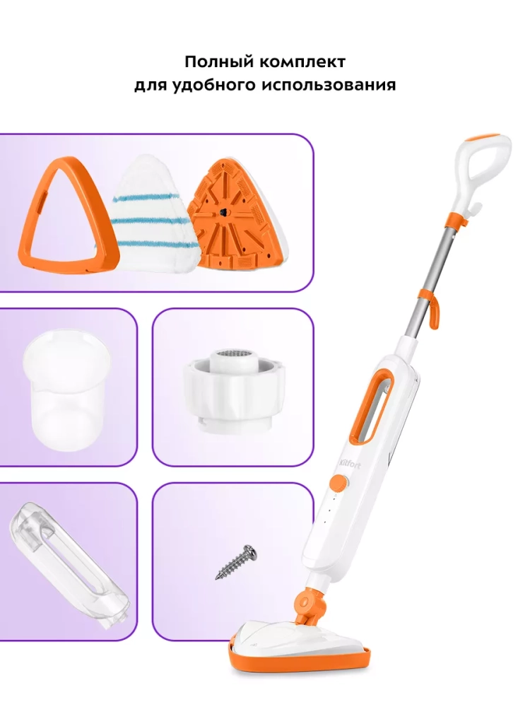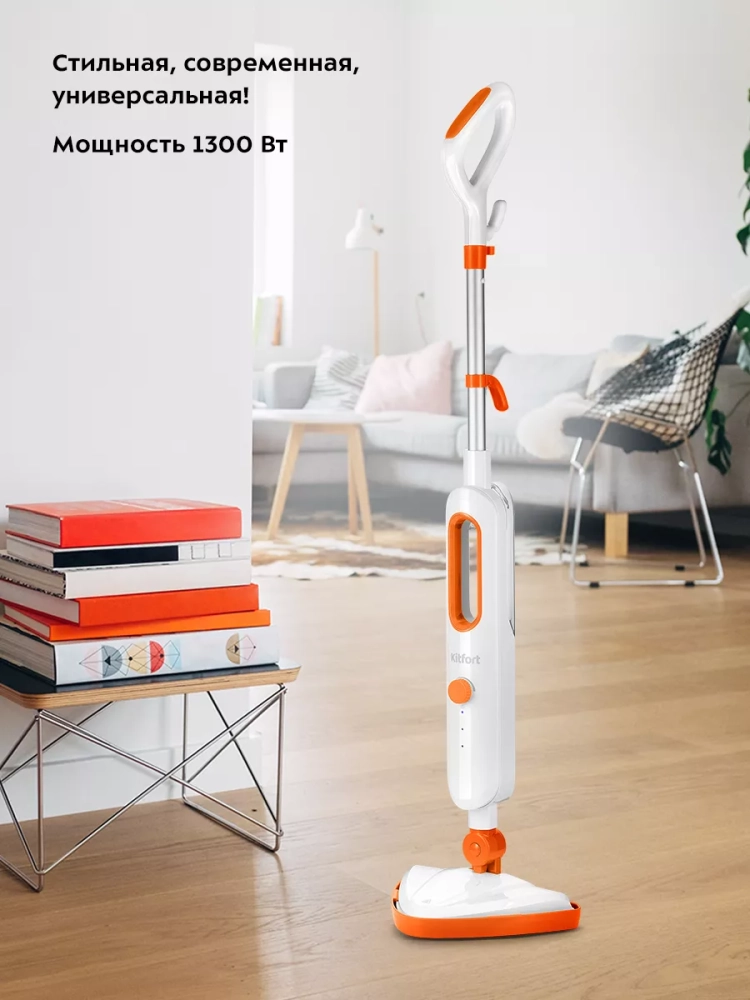 Паровая швабра Kitfort КТ-1048 — универсальное устройство, которое поможет избавиться от пыли и грязи с помощью мощной струи пара, а также продезинфицирует обрабатываемую поверхность. Устройство оснащено резервуаром для воды емкостью 360 мл, что позволяет производить непрерывную уборку 13–20 минут.
