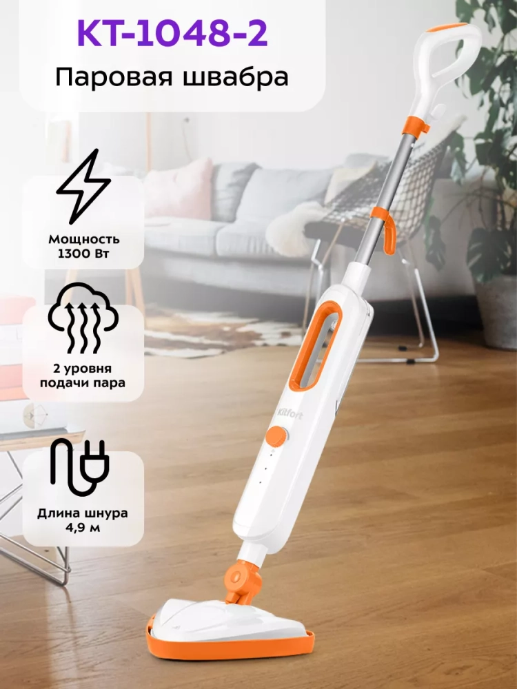 Паровая швабра с насадками КТ-1048 - 1300 Вт - 360 мл