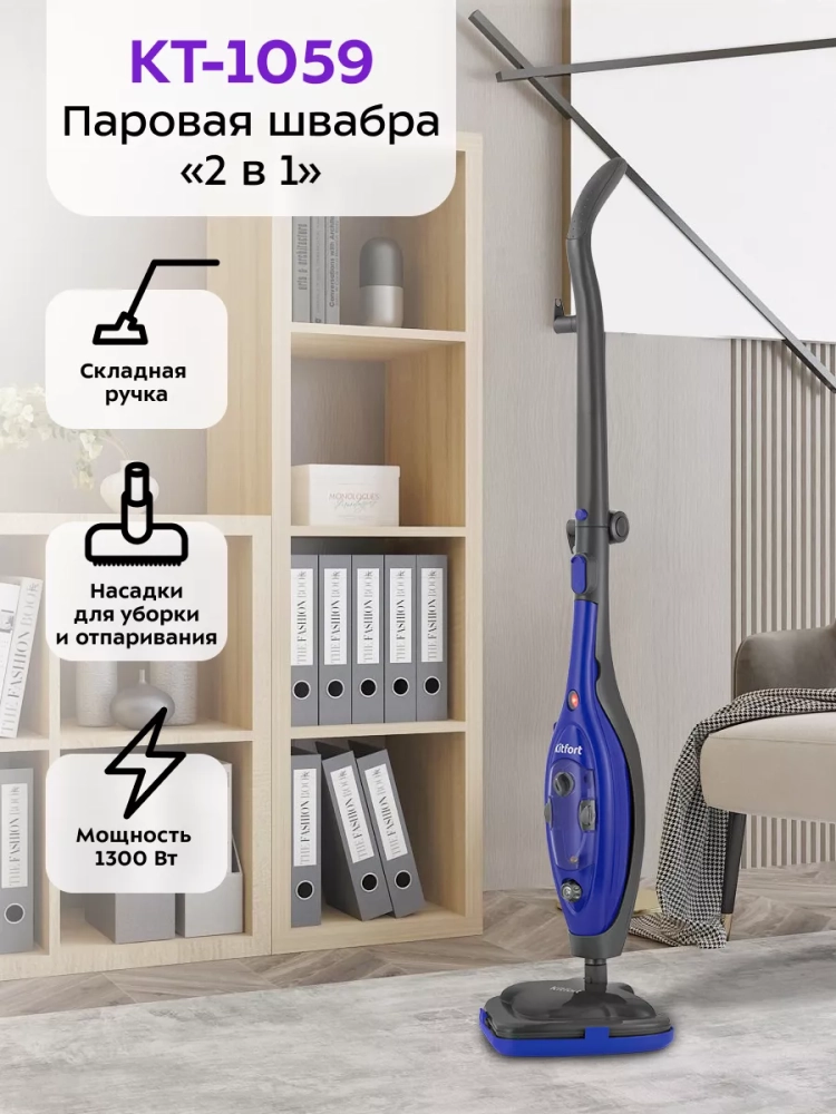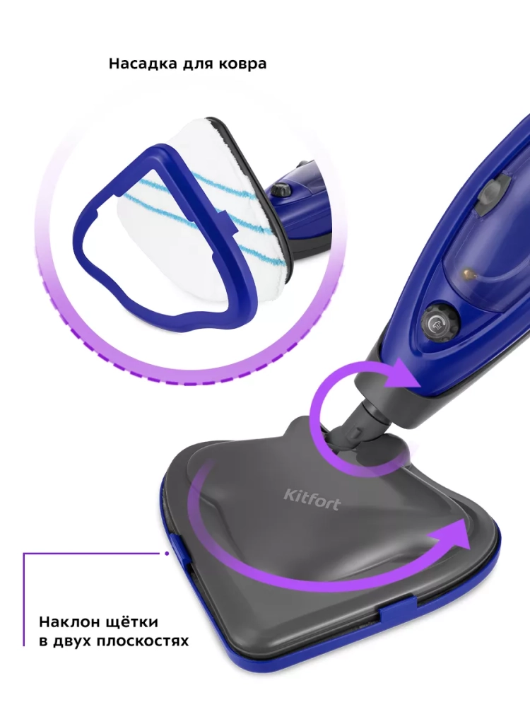 Паровая швабра Kitfort КТ-1059 — универсальное устройство, которое поможет избавиться от пыли и грязи с помощью мощной струи пара, а также продезинфицирует обрабатываемую поверхность. Паровая швабра очистит раковину и плиту на кухне, зеркала и мебель без каких-либо химических средств, исключительно паром.