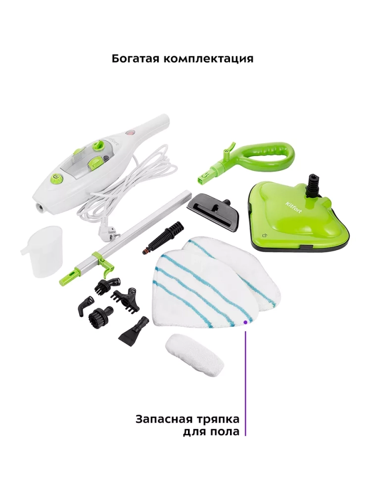 Паровая швабра Китфорт КТ-1060 очень легкая и простая в использовании. Уборка с ней будет проходить быстро и легко.