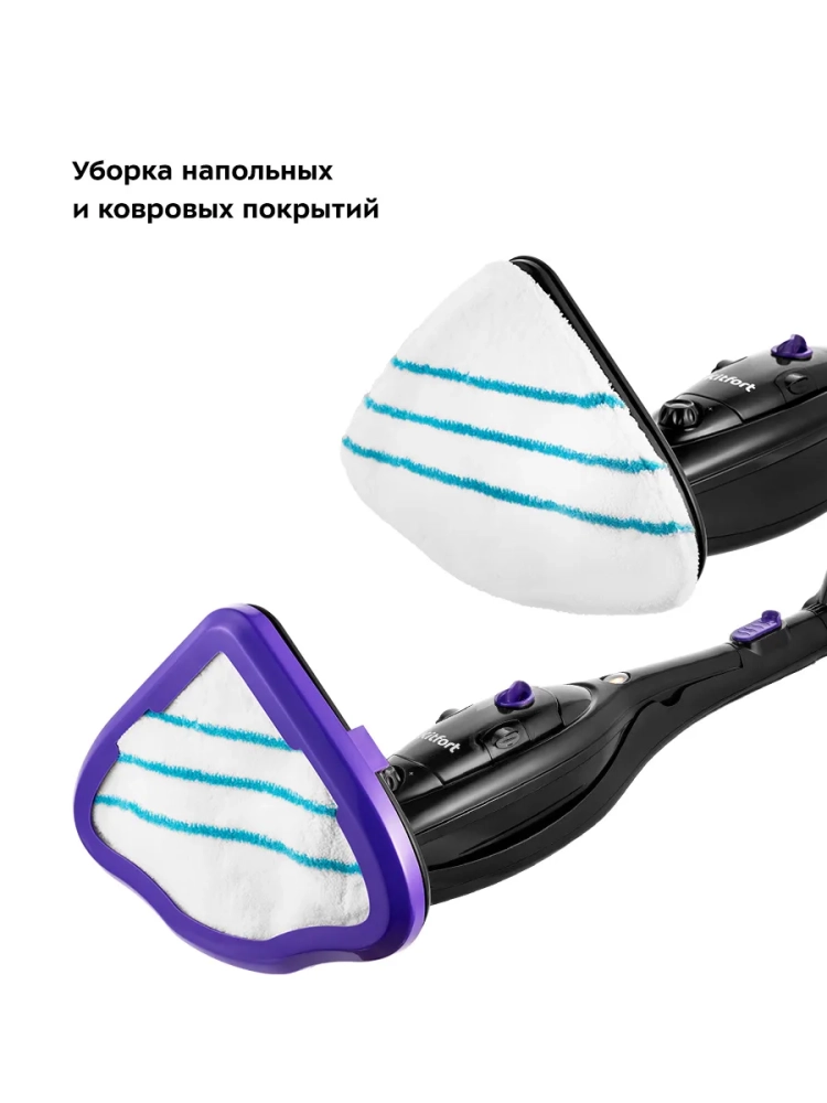 Принцип действия паровой швабры основан на воздействии горячего пара на загрязнения. Пар проникает внутрь загрязнения, размягчая и растворяя его, а затем с помощью тряпки частички грязи смываются. Для паровой швабры не нужны чистящие средства, поэтому она станет идеальным решением уборки дома для аллергиков. В комплекте есть рамка для ковра, которая обеспечивает легкое скольжение щетки для пола по ковру.