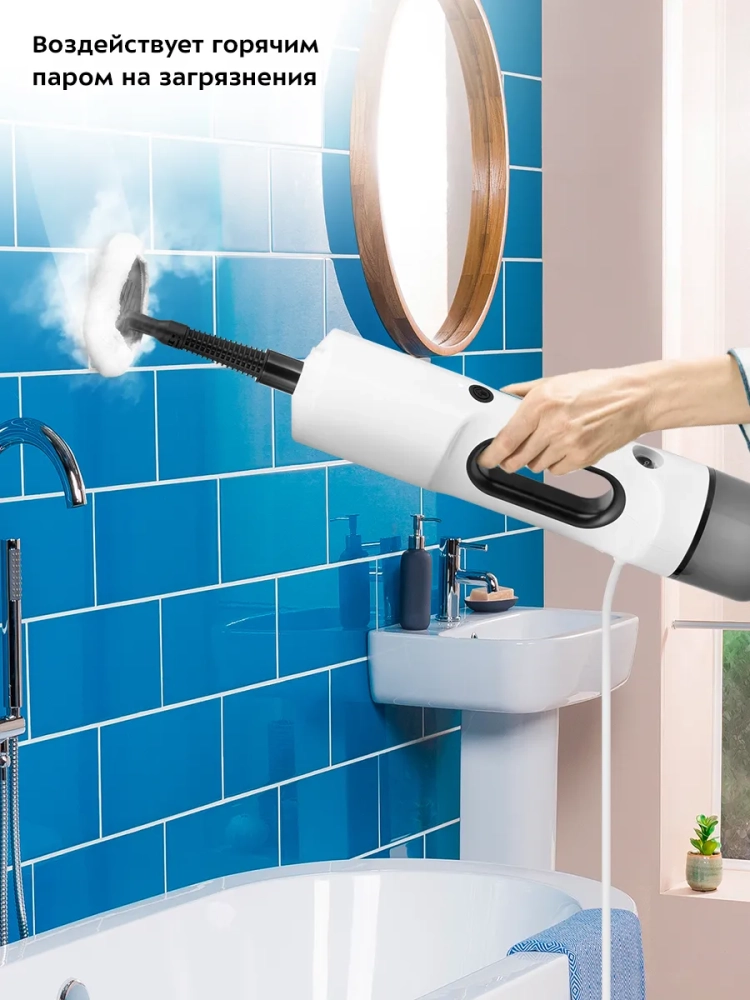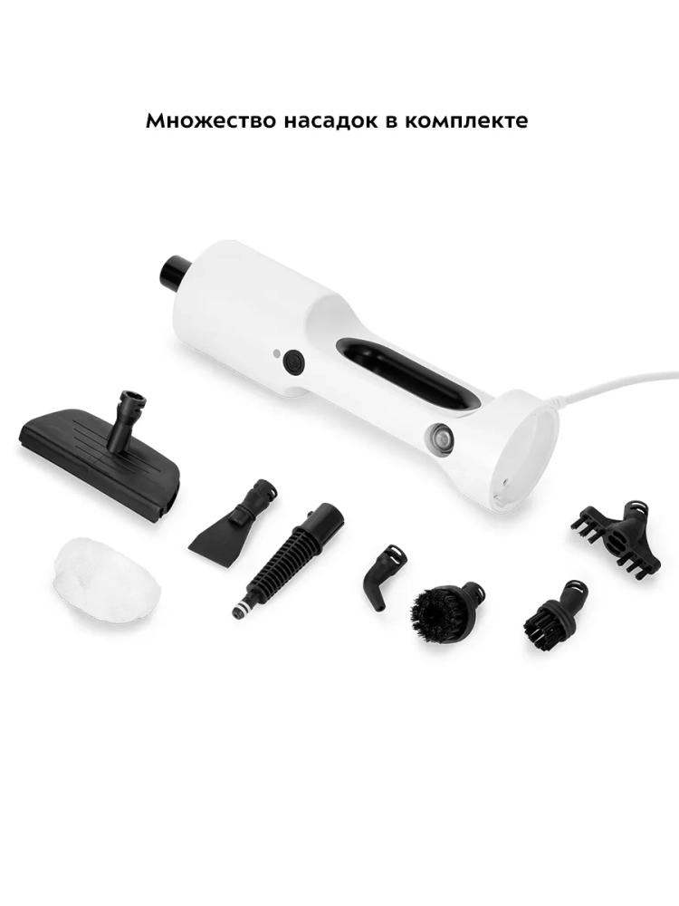 Конструкция «2 в 1» предусматривает наличие ручного модуля, который удобно использовать с насадками. С помощью насадок можно очистить большинство вещей в доме: легко отмыть окна, почистить шторы и мягкую мебель. Скребок и нейлоновые щетки эффективно очищают сложные загрязнения с помощью механического воздействия. В комплекте есть насадка для отпаривания с тряпкой для отпаривания, чтобы отпаривать одежду и чистить обивку мягкой мебели. На насадке для отпаривания предусмотрен резиновый скребок для очистки окон, зеркал и кафельной плитки. Струйная и угловая насадки помогут очистить щели и углы.
