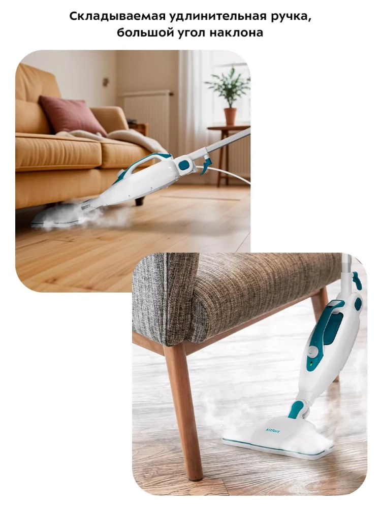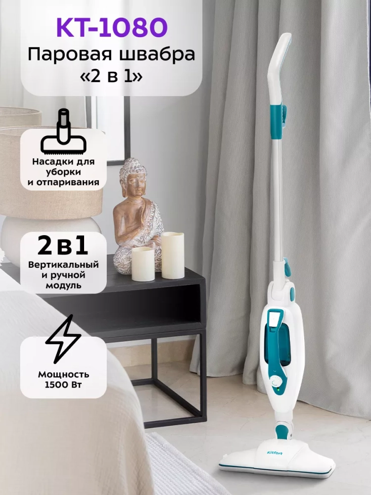 Паровая швабра КТ-1080 очень легкая и простая в использовании. Уборка с ней будет проходить быстро и легко.