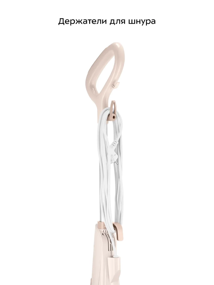 Паровая швабра обладает функцией вертикальной парковки и большим углом наклона при уборке, который поможет легко убирать пространство под мебелью. Напольная щетка с наклоном в двух плоскостях делает швабру очень маневренной и облегчает уборку. Также у паровой швабры предусмотрены держатели шнура.
