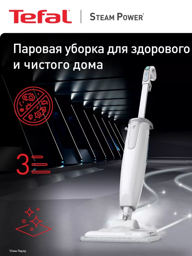 Уборка мощным паром без использования химических моющих средств позволит содержать в исключительной чистоте ваш дом и поддерживать здоровье ваших близких. Паровая швабра Steam Mop VP6557RH работает без применения моющих средств и позволяет эффективно уничтожить до 99% микробов и бактерий, гарантируя абсолютную чистоту вашего дома.
