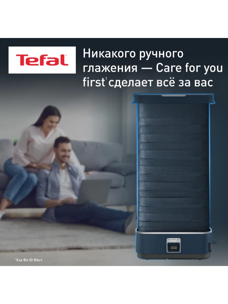 Паровая система Tefal Care For You YT2020E0. Самый продвинутый отпариватель от Tefal, который разглаживает, освежает и дезинфицирует одежду автоматически. Отпариватель одежды Tefal Care For You First делает всю работу за вас - он разглаживает, освежает и дезинфицирует до 3 вещей одновременно в полностью автоматическом режиме. Вы можете доверить ему любую одежду, даже из очень деликатных тканей - для устранения неприятных запахов достаточно поместить вещи в прибор на 20 минут, а для уничтожения 99,99% вирусов, бактерий и паразитов требуется всего 40 минут.