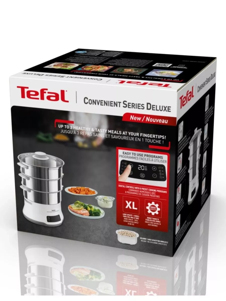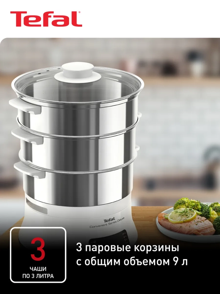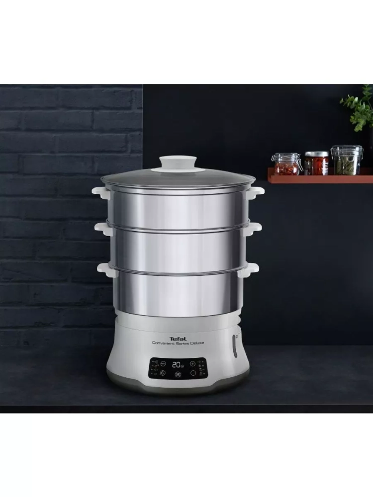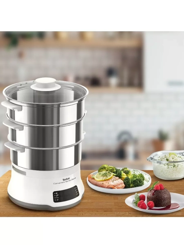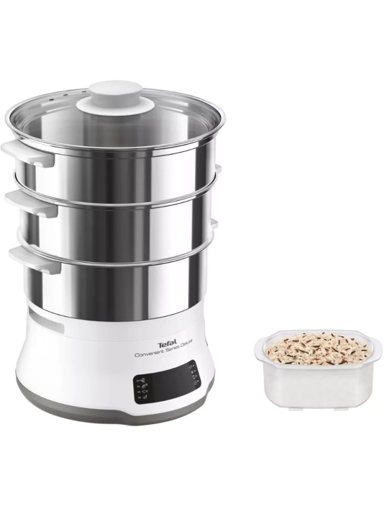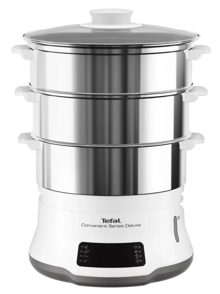 Пароварка электрическая Tefal Convenient Series Deluxe VC502D10. Вкус и польза без лишних хлопот. Невероятно простое приготовление на пару благодаря 8 встроенным программам, цифровому управлению и наглядному тачскрину. Трехъярусная система позволяет готовить несколько блюд одновременно, значительно экономя время.