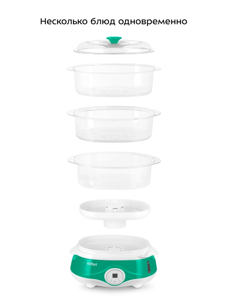 Одно из основных преимуществ пароварки — это возможность готовить сразу несколько типов продуктов, например гарнир и мясо, что уменьшает время, проведенное на кухне. С пароваркой КТ-6454 вы получите полезные блюда с минимумом усилий.