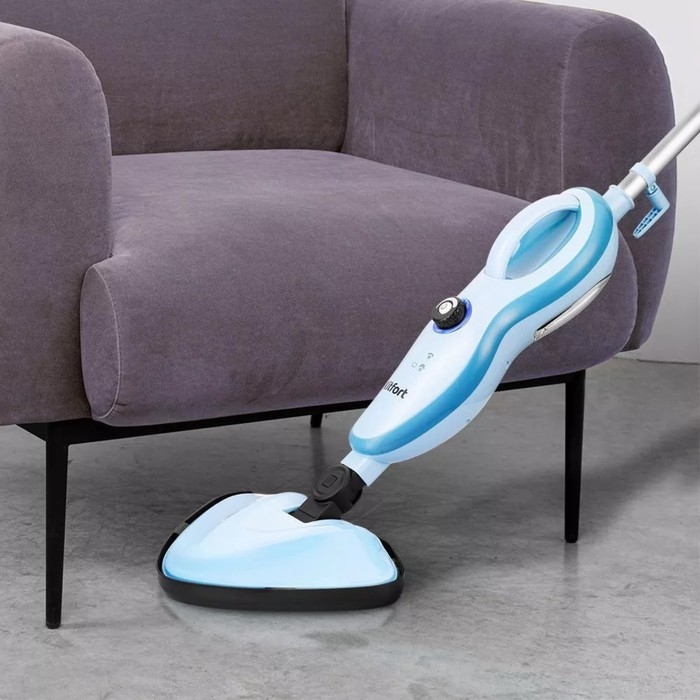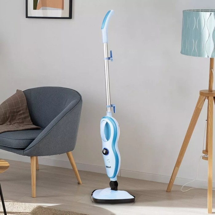 Паровая швабра Kitfort КТ-1046, 1500 Вт, 370 мл, шнур 8 м, бело-голубая