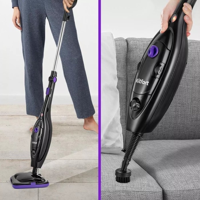 Паровая швабра Kitfort KT-1061, 1300 Вт, 300 мл, шнур 4.7 м, чёрно-фиолетовая