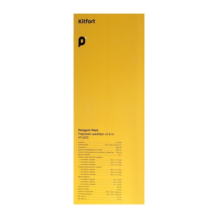 Паровая швабра КТ-1072, 1300 Вт, 300 мл, шнур 4.9 м, бело-чёрная