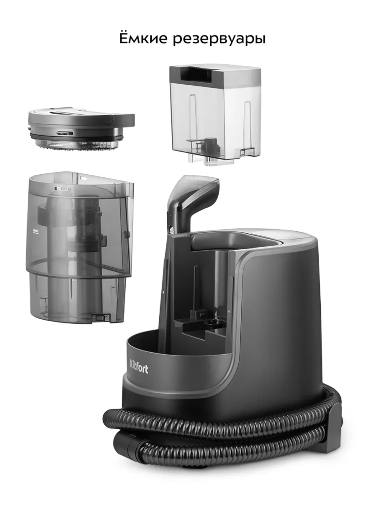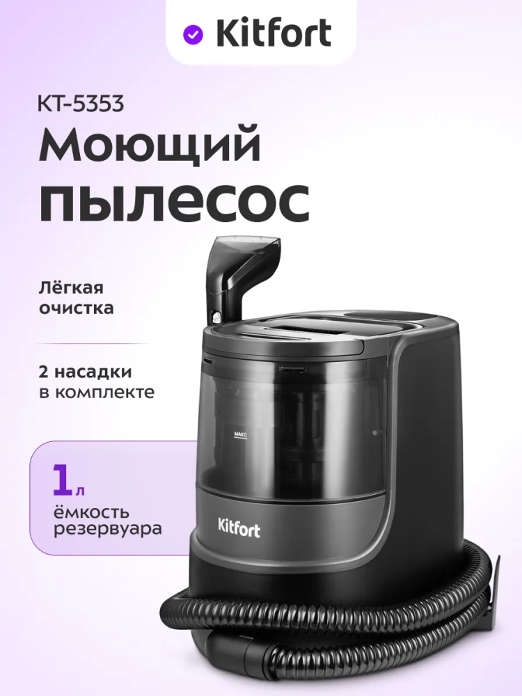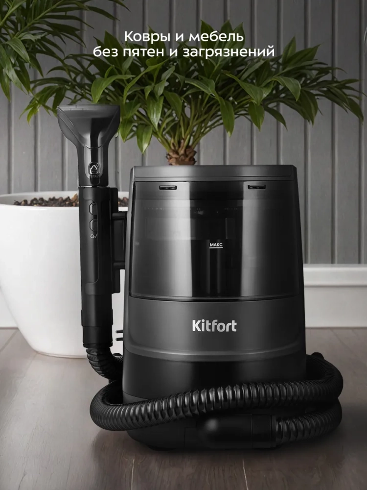 Паровой моющий пылесос для ковров и мягкой мебели Kitfort KT-5353 поможет очистить обивку дивана, кресел, сидений в машине и другой мягкой мебели, а также ковры и ковровые покрытия. Пылесос автоматически подает чистую воду или пар на очищаемую поверхность, а затем всасывает воду с пылью и другими загрязнениями. Пыль и грязь оседают в воде, в резервуаре для грязной воды. В резервуар для чистой воды добавляют воду, для доочистки воды в нем предусмотрен фильтр грубой очистки из нержавеющей стали. Фильтр для воды предотвращает попадание крупных частиц в патрубки, помпу и нагревательный элемент. Когда резервуар для грязной воды будет наполнен выше максимально допустимого уровня, пылесос отключится и защитит двигатель от попадания влаги. Также в резервуаре для грязной воды предусмотрен поплавок, который по мере наполнения резервуара поднимается и дополнительно защищает мотор от попадания жидкости из резервуара для грязной воды.