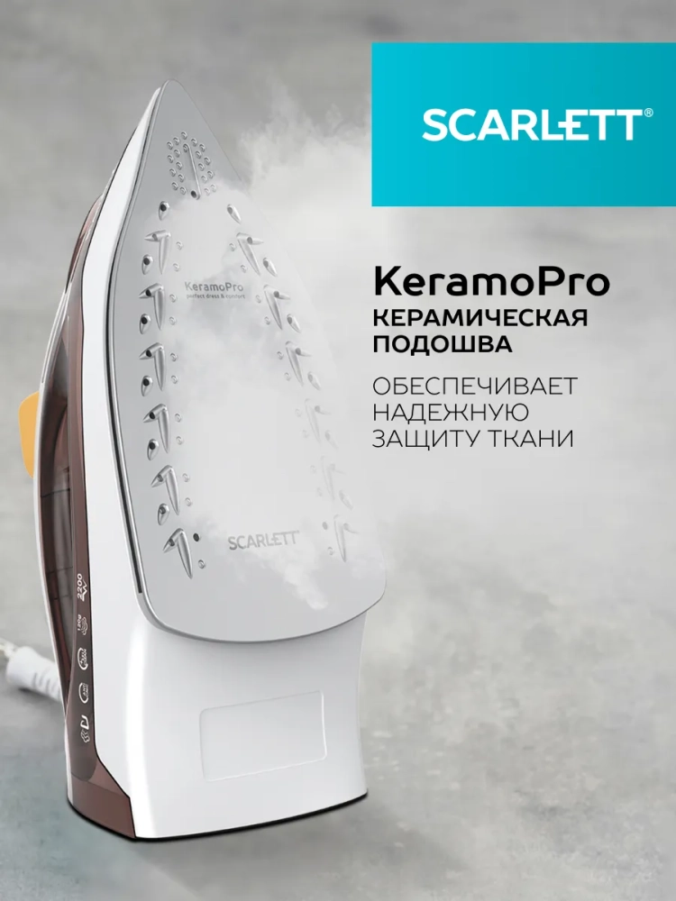 Утюг Scarlett SC-SI30K47, выполненный в коричневом цвете, оснащён подошвой с керамическим покрытием KeramoPro, которая обеспечивает отличное скольжение и бережное отношение ко всем видам тканей. Максимальная мощность 2200 Вт позволит в считанные минуты справиться даже с тканями со сложной фактурой, а различные температурные режимы помогут выбрать оптимальный для того, чтобы самые деликатные ткани выглядели после глажения идеально. В режиме парового удара создает 120 грамм пара в минуту, расправляя даже самые непослушные складки. Функция вертикального отпаривания позволяет привести вещи в безупречный вид, не снимая их с вешалки. Легко ухаживать за утюгом позволит функция самоочистки, а система ANTI-CALC защитит от накипи и продлит срок его службы. Оптимальный вес способствует разглаживанию неровностей без излишней нагрузки на руки, а узкий носик позволяет идеально отгладить даже самые труднодоступные места.