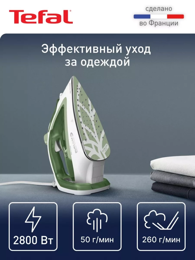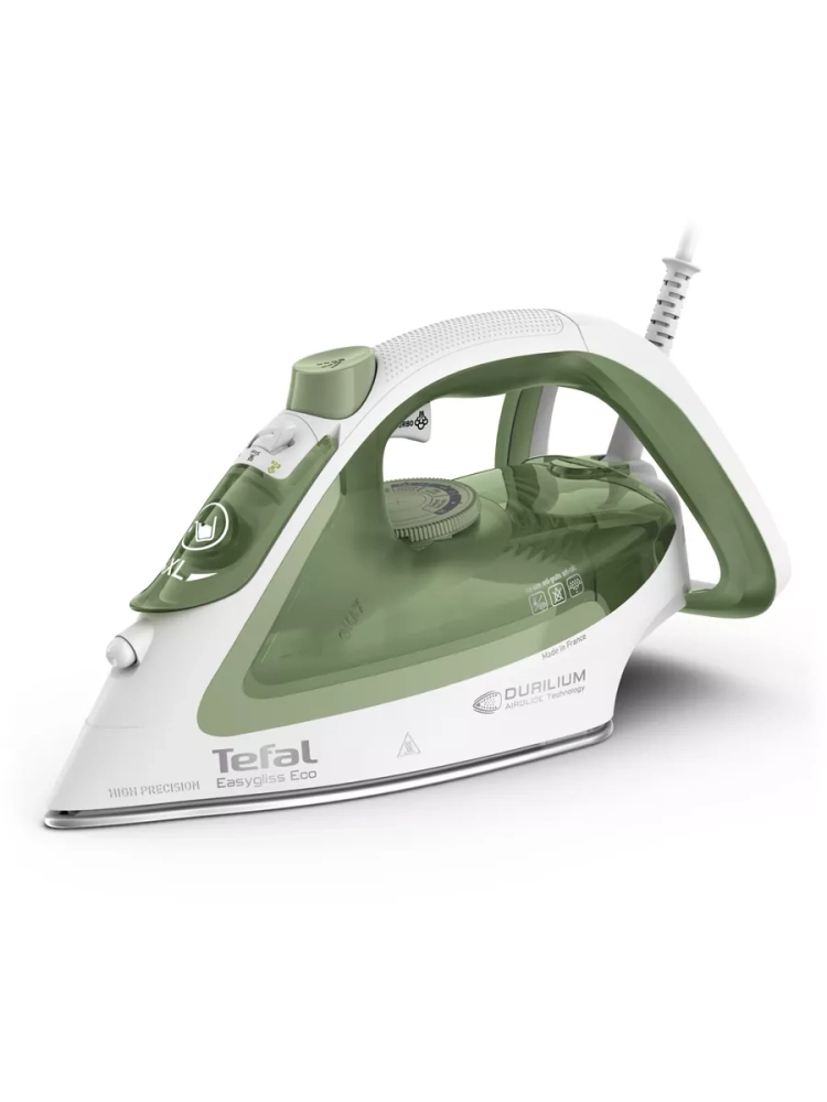 Паровой утюг Easygliss Eco FV5781E1. Эффективный уход за одеждой без лишних трат энергии. Эко-режим экономит до 30% энергии, сохраняя эффективность глажения. Дружелюбный к природе: утюг на 88% пригоден для вторичной переработки. Мощность 2800 Вт обеспечивает быстрый разогрев и подачу пара 50 г/мин, позволяя легко разглаживать даже стойкие заломы.