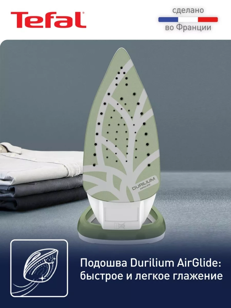 Лучшее скольжение от Tefal: прочная и устойчивая к повреждениям подошва Durilium Airglide. Зауженный носик для разглаживания складок в труднодоступных местах – легко прогладит узкие края, швы и воротники. Сделано во Франции в соответствии с высочайшими стандартами качества и мастерства.