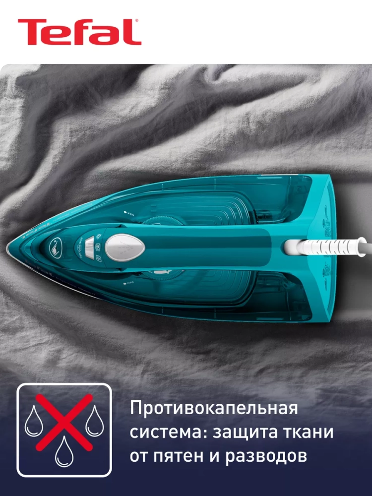 К тому же, мощный паровой утюг Тефаль оснащен удобным резервуаром для воды объемом 270 мл и широким отверстием для его комфортного наполнения. Специальная система «Капля-стоп» предотвратит образование грязных пятен на тканях, сохраняя вещи чистыми во время глажения. А функция автоматического отключения, обеспечит максимальную безопасность во время использования бытовой техники.