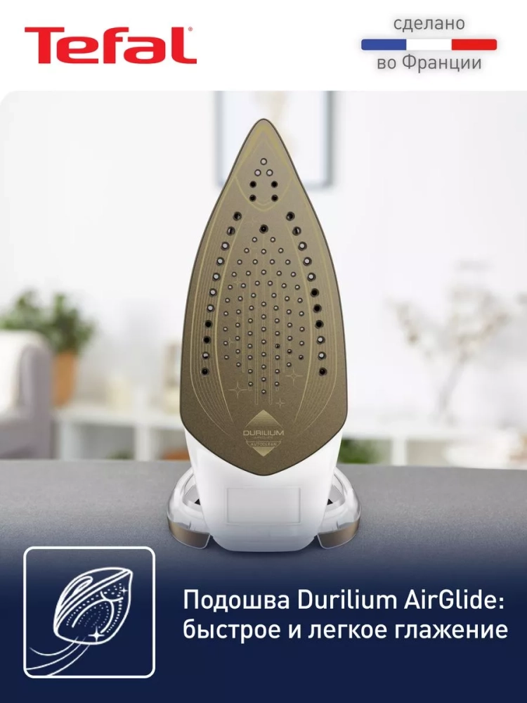 Электрический утюг с паром можно без труда использовать для вертикального отпаривания домашнего текстиля, белья, деликатных тканей, а также вы быстро сможете освежить одежду перед выходом из дома. Сочетание высокой температуры и давления пара уничтожает до 99.99% бактерий, обеспечивая свежесть и гигиеничность. Кроме того, портативный утюг Тефаль оснащен функцией автоотключения – после 8 минут в вертикальном положении и после 30 секунд в горизонтальном или на боку. Данная бытовая техника разработана и произведена во Франции в соответствии с европейскими стандартами.