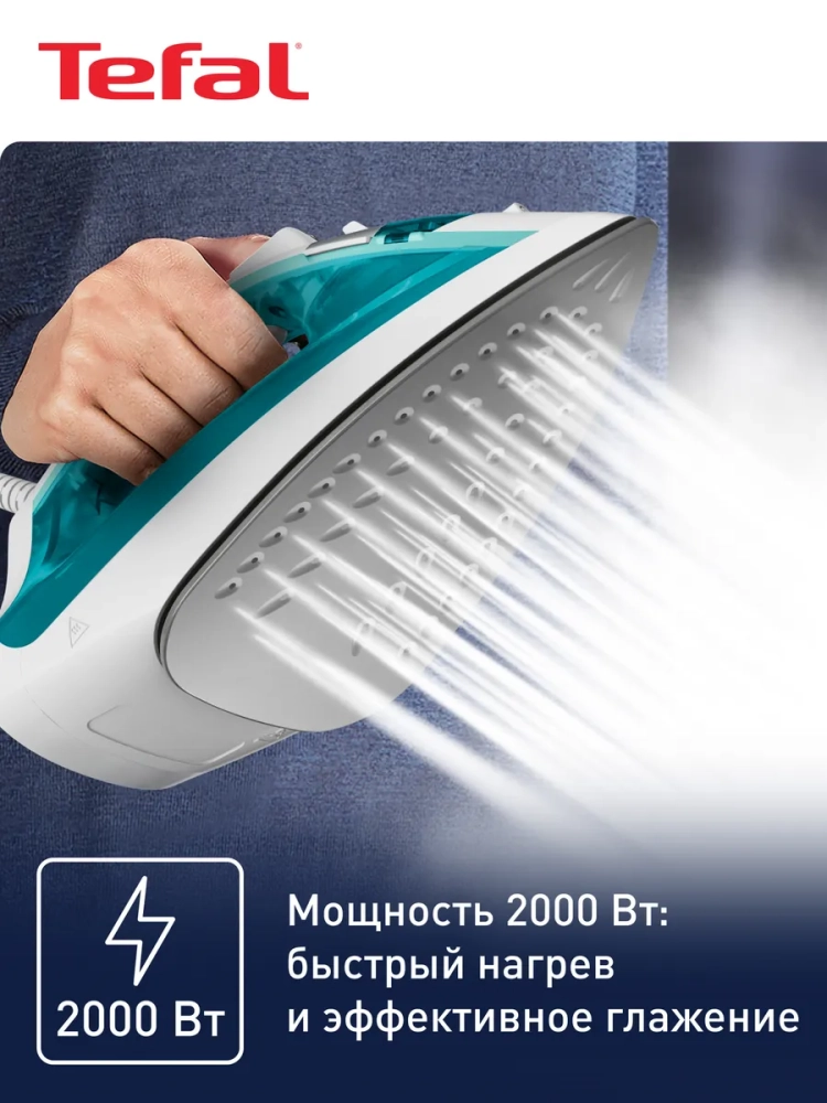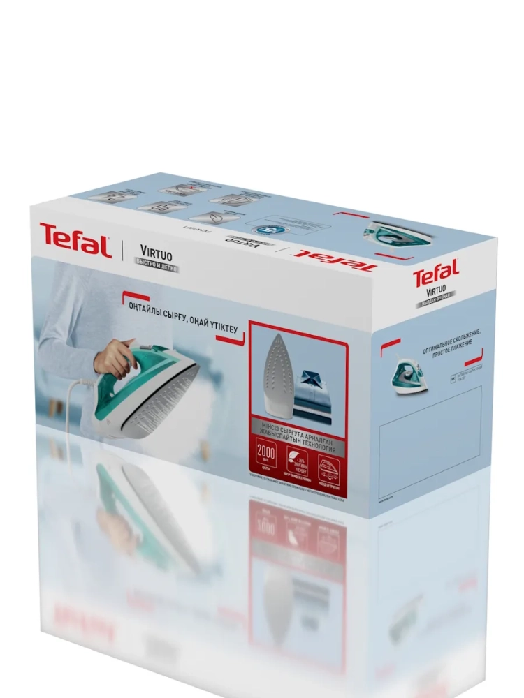 Паровой утюг Tefal Virtuo FV1R10F1 мощностью 2000 вт, с вертикальным паровым ударом 90 г/мин и постоянной подачей пара 24 г/мин поможет разгладить самые стойкие складки.