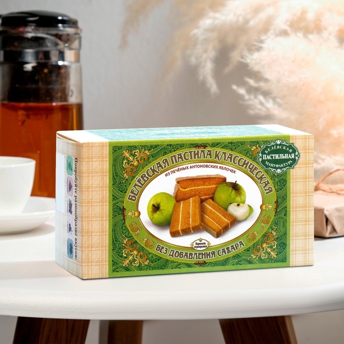 Классическая белёвская пастила – это незабываемое лакомство, созданное с домашней теплотой и любовью. Производство пастилы – ручное: сладость готовится по старинному традиционному рецепту 19 века, который не менялся с самого его изобретения.