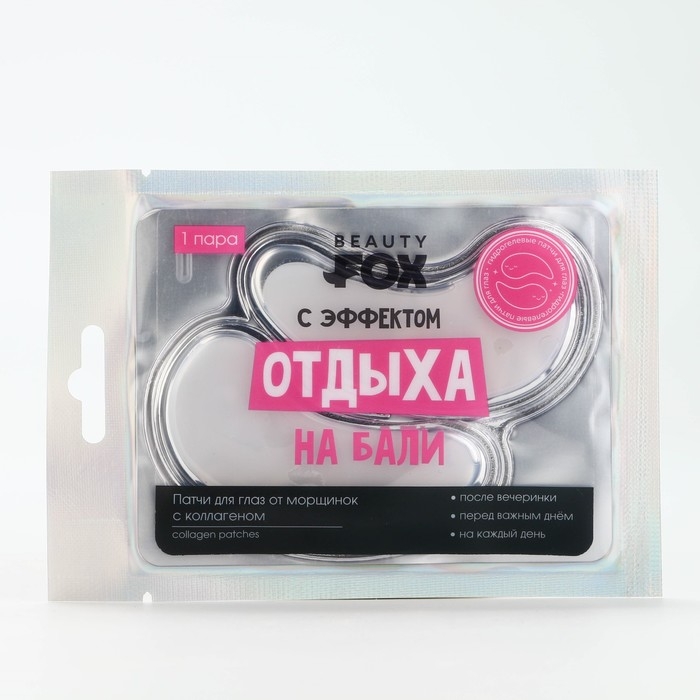 Патчи для области вокруг глаз «С эффектом отдыха на Бали», 1 пара, гидрогелевые с коллагеном, BEAUTY FOX