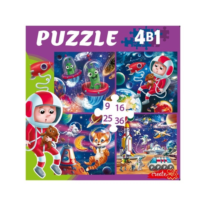 Пазл 4 в 1 «Космический вираж», 9,16, 25, 36 элементов