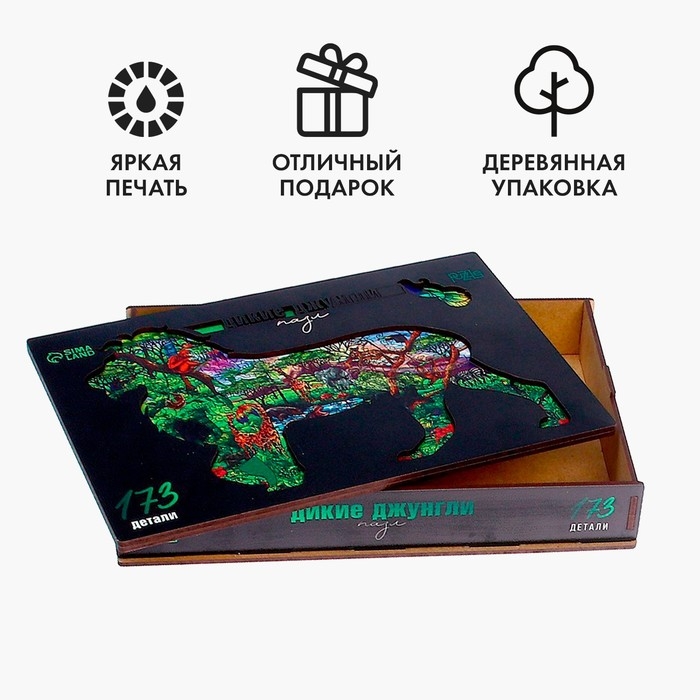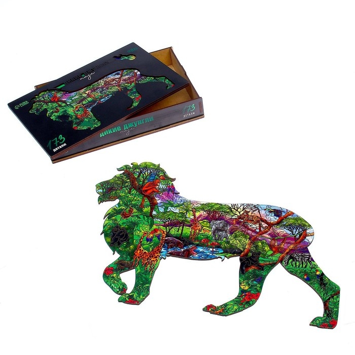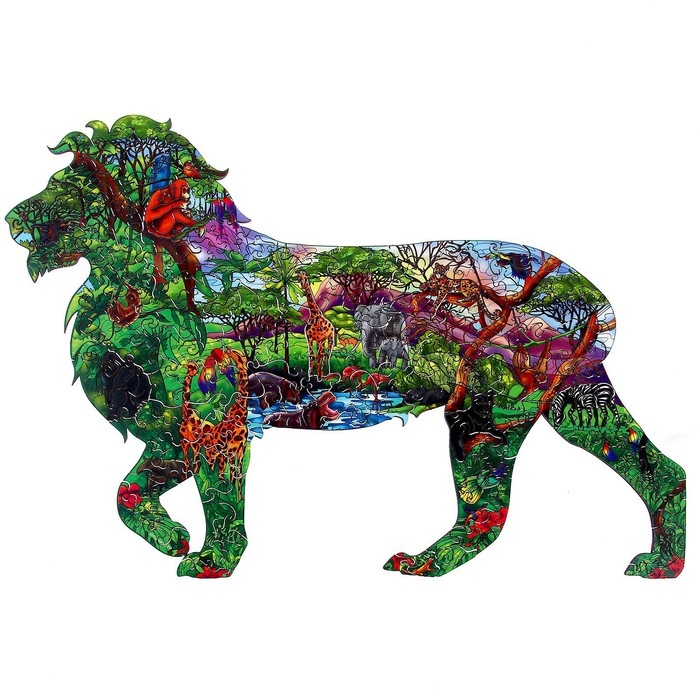 Пазл деревянный фигурный «Лев. Дикие джунгли», 173 элементов не останутся без вашего внимания!
