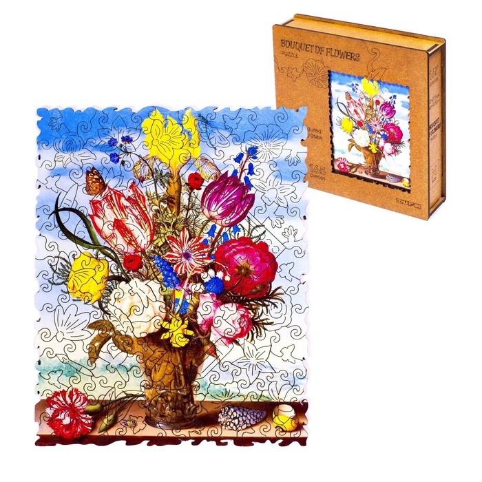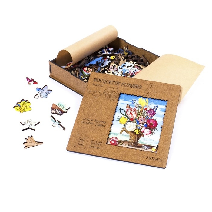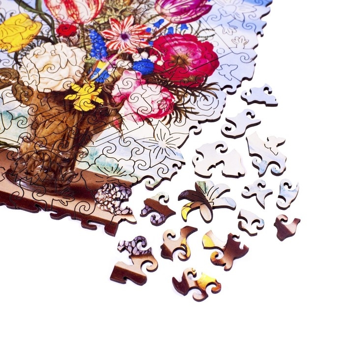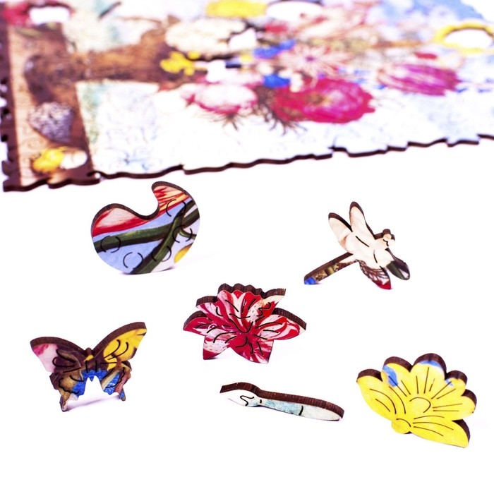 Пазл фигурный «Букет» — это уникальное погружение в светлую атмосферу гармонии и фантазии!
