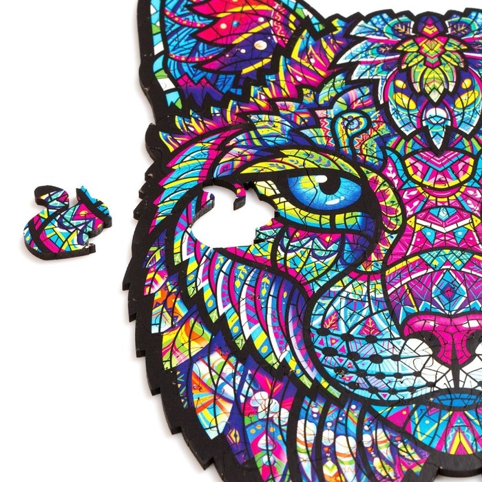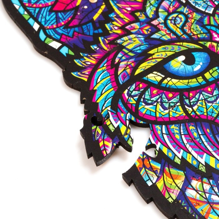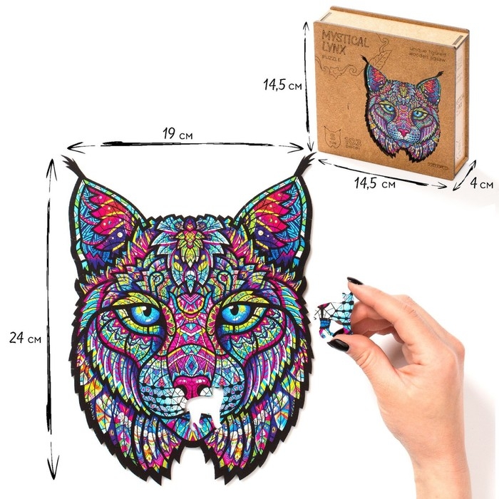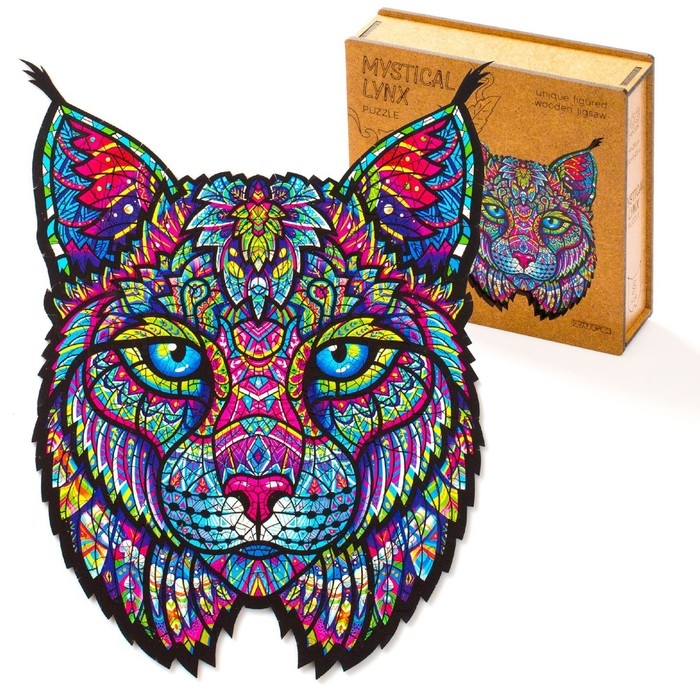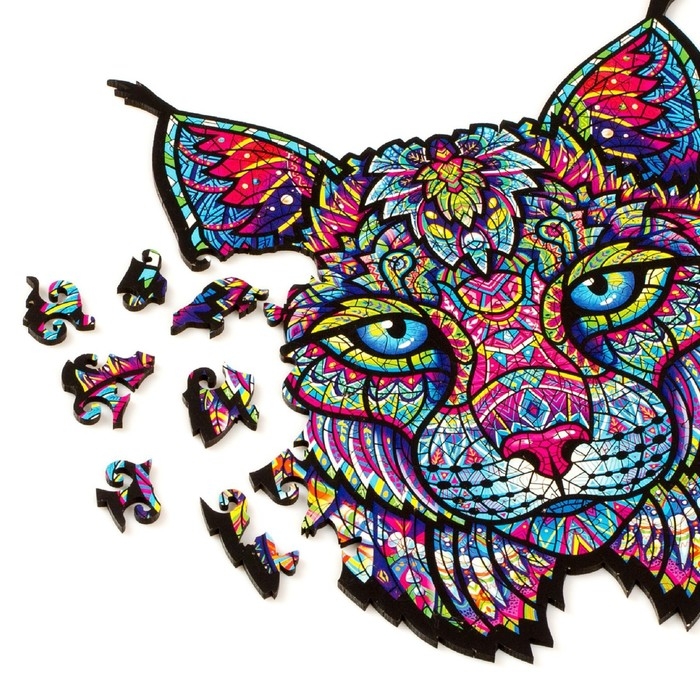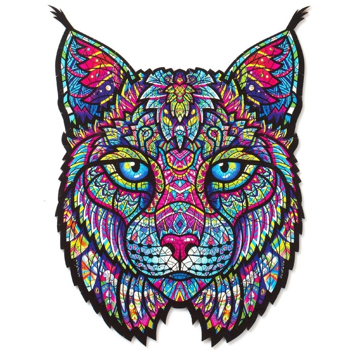 Пазл фигурный «Мистическая Рысь» — это уникальное погружение в разноцветную атмосферу гармонии и фантазии!