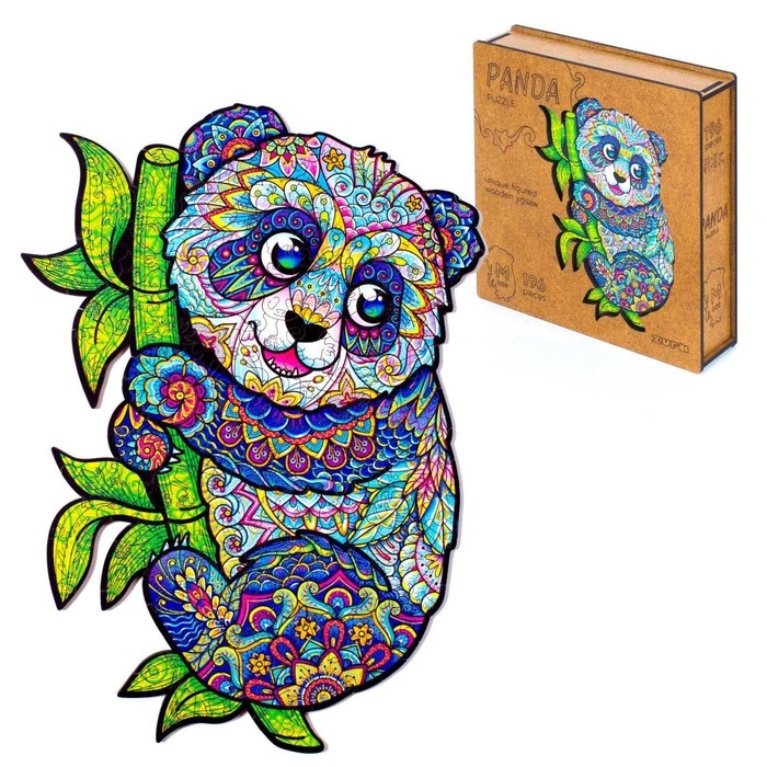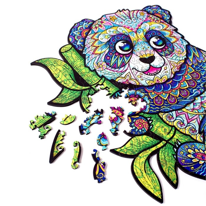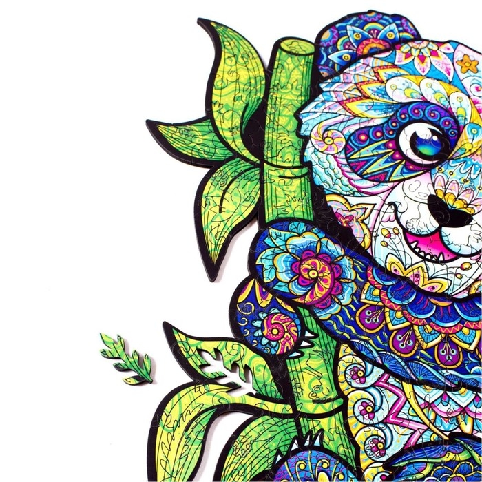 Пазл фигурный «Панда» — это уникальное погружение в разноцветную атмосферу гармонии и фантазии!