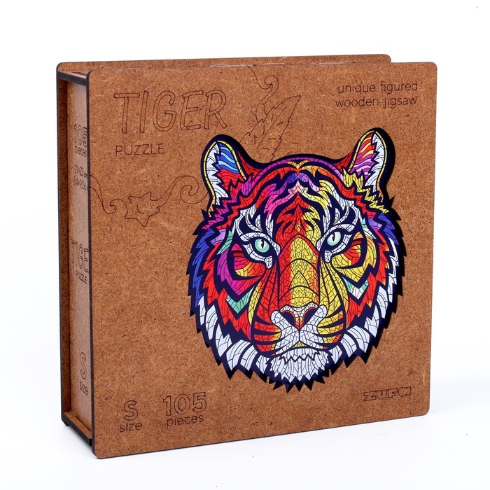 Пазл фигурный «Тигр» — это уникальное погружение в разноцветную атмосферу гармонии и фантазии!