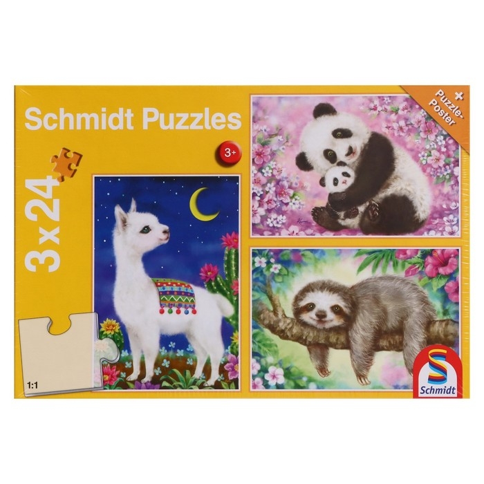 Пазл «Лама, панда, ленивец», 3 × 24 элемента