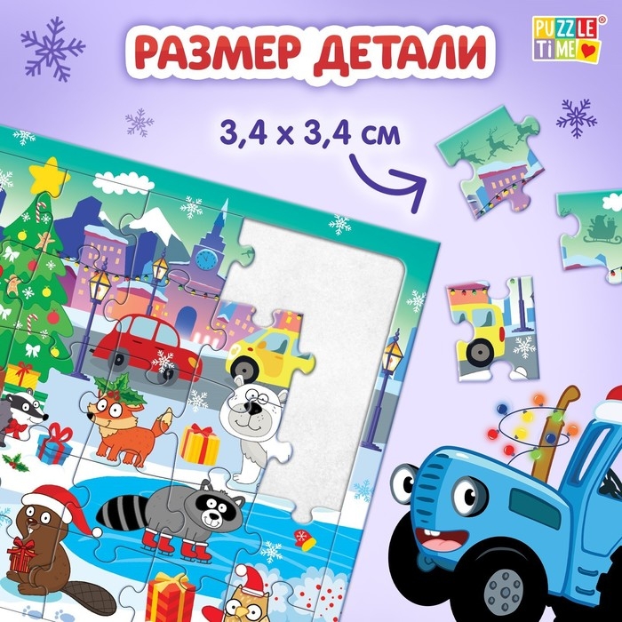 Пазл на подложке «Новогодние развлечения Синего трактора», 35 деталей