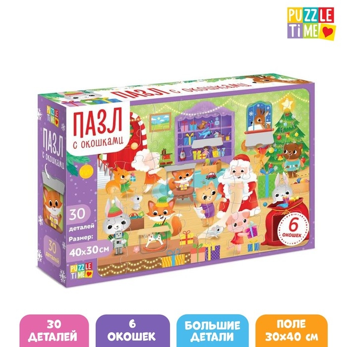 Пазл с окошками «Мастерская Дедушки Мороза», 6 окошек, 30 деталей