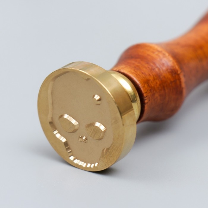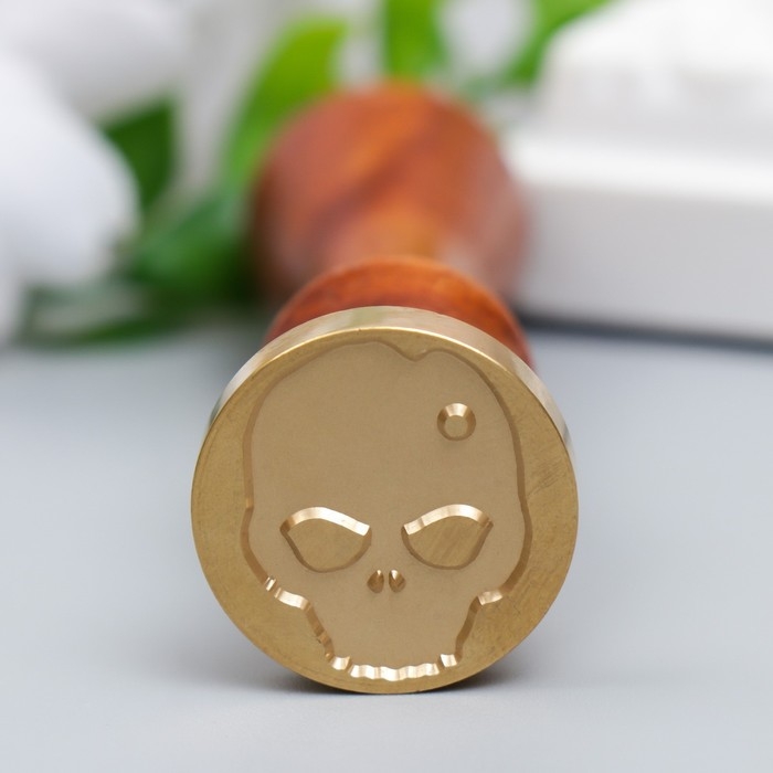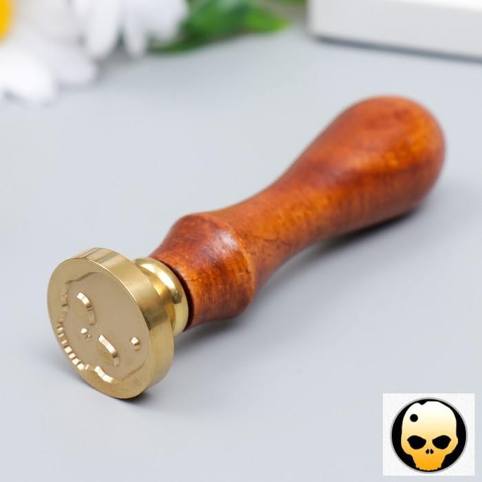 Печать для сургуча с деревянной ручкой "Череп с пулевым отверстием" 9х2,5х2,5 см