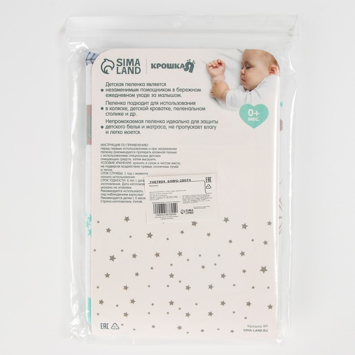 Используйте подкладную клеёнку во время пеленания или сна, если на младенца не надет подгузник. Изделие размером подойдёт для детской кроватки или коляски. Применяйте его, чтобы защитить матрасик от намокания.