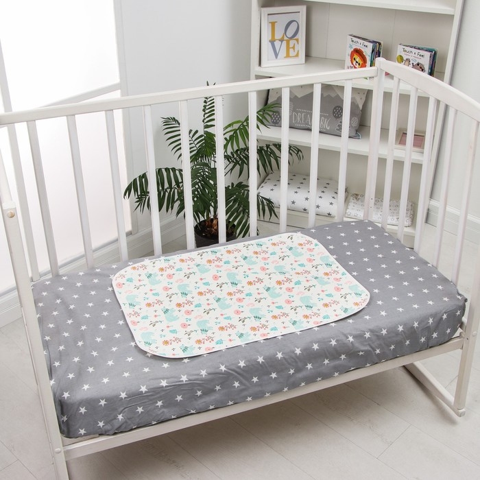 Используйте подкладную клеёнку во время пеленания или сна, если на младенца не надет подгузник. Изделие размером подойдёт для детской кроватки или коляски. Применяйте его, чтобы защитить матрасик от намокания.