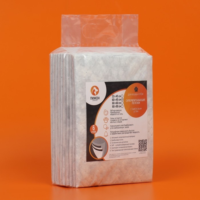 Пеленки для животных угольные шестислойные гелевые, 60 х 45 см, (в наборе 10 шт)