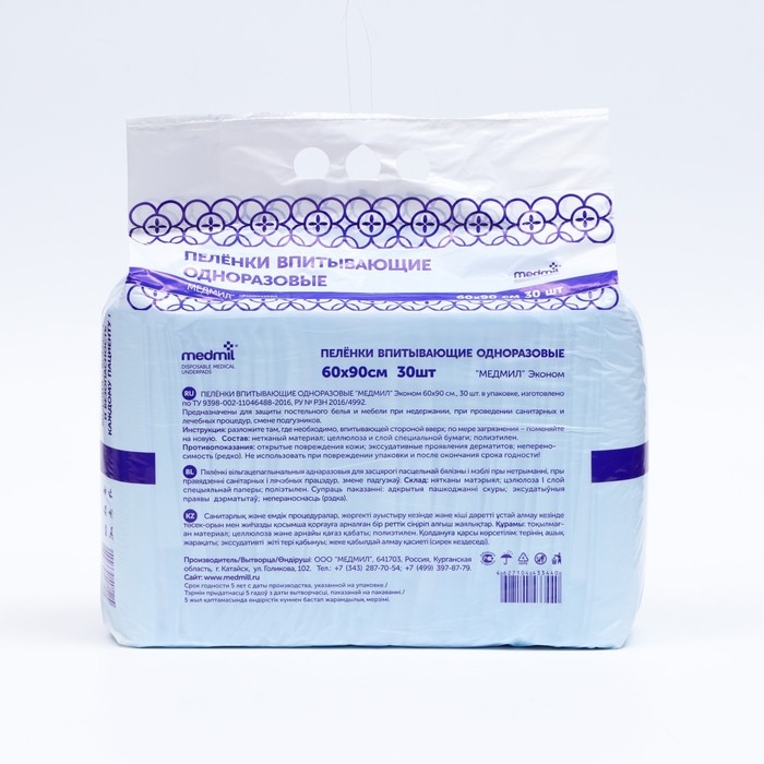 Пеленки впитывающие одноразовые Medmil, эконом, 60 х 90, 30 шт.