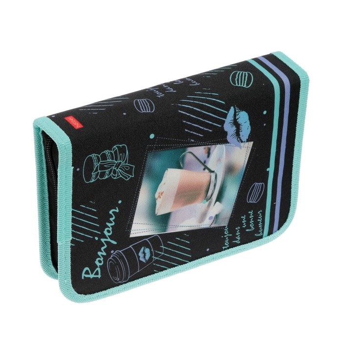 Пенал 1 секция, 140 х 200 х 40 мм, 2 откидные планки, тканевый, Hatber "Привет, красотка"