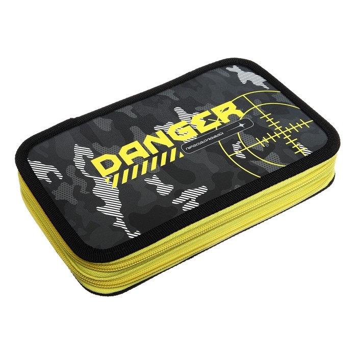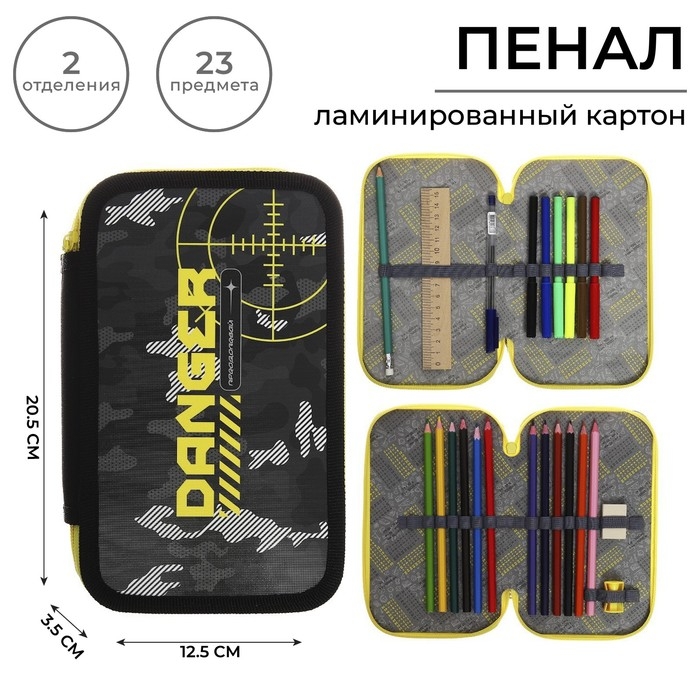 Пенал 2 секции, 125 х 205 мм, с наполнением 23 предмета, Calligrata "Danger" ламинированный картон, 30П26/2/set