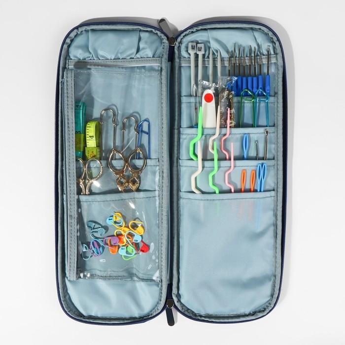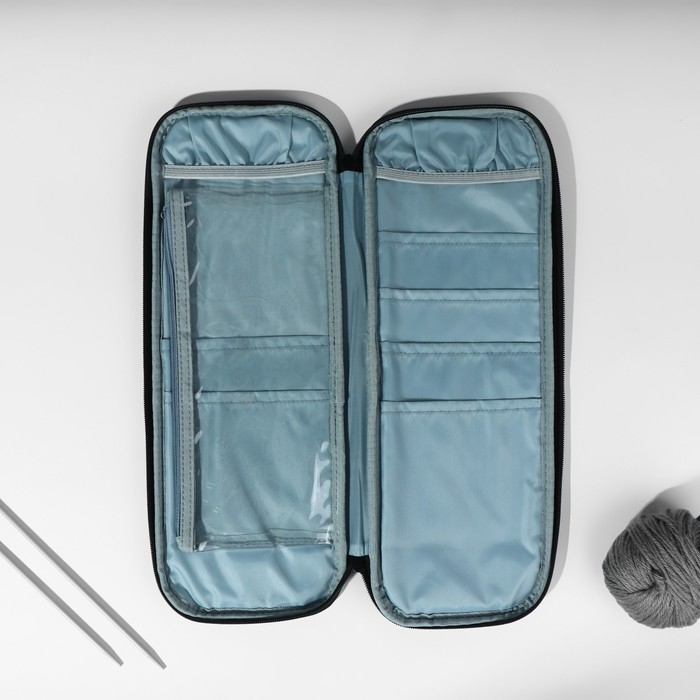 Пенал для вязания — это компактный и удобный органайзер, предназначенный для хранения и транспортировки различных материалов и инструментов, необходимых для вязания. В нём вы можете легко разместить пряжу, спицы, крючки, наборы кнопок, бусин и другие аксессуары. Пенал имеет застёжку на молнии для надёжного закрытия. Такой органайзер помогает держать все необходимые материалы в порядке и под рукой, что делает процесс вязания более удобным и приятным.