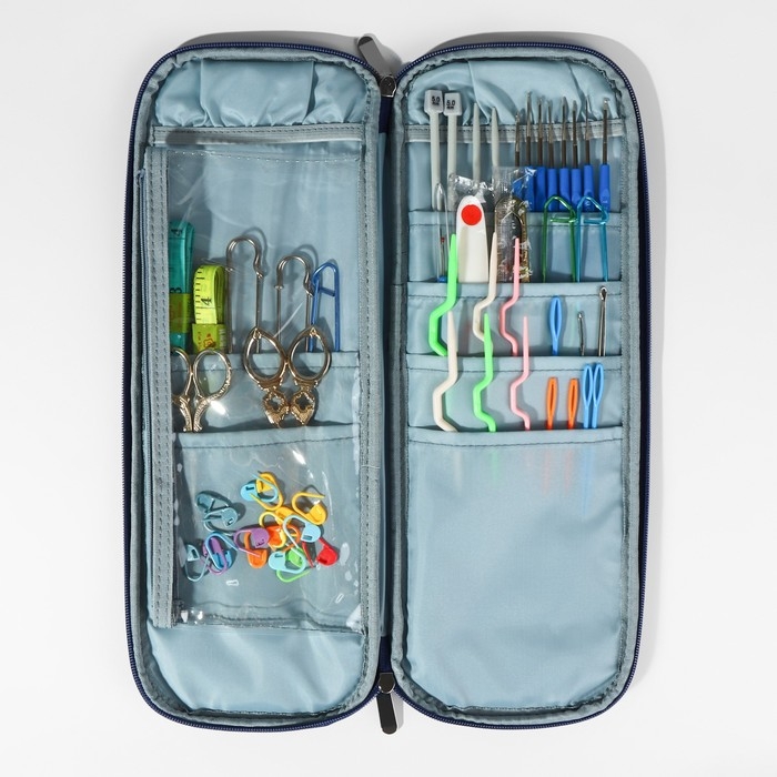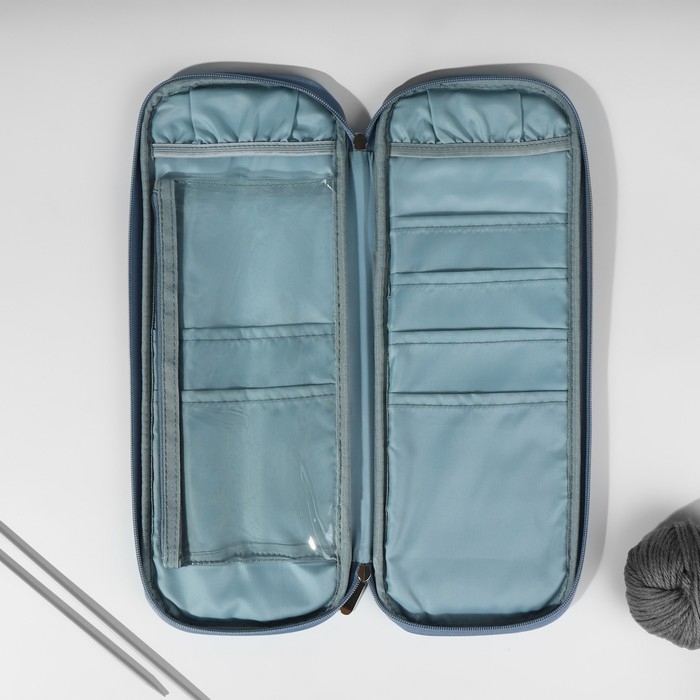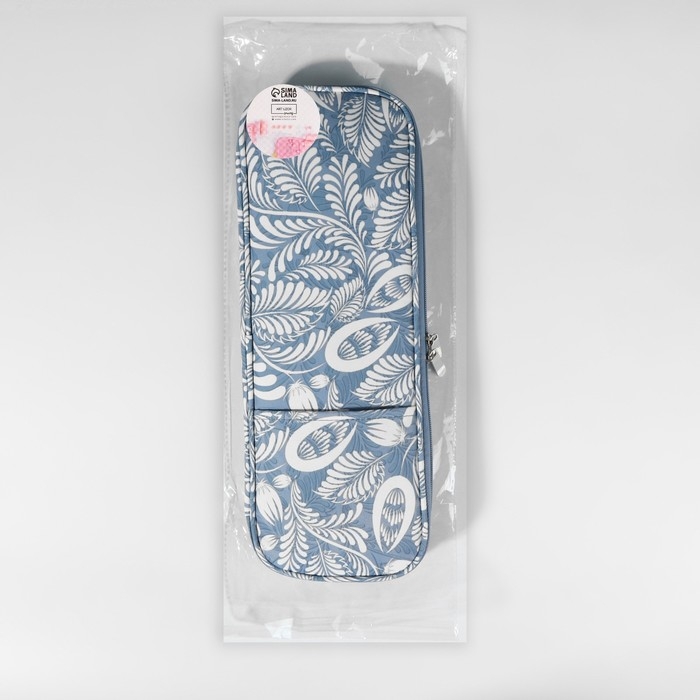 Пенал для вязания «Цветы», 1 отделение, 8 карманов, 40 × 15 × 2,5 см, цвет голубой/белый