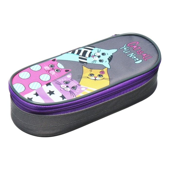 Пенал-футляр 100 х 225 х 60 мм, мягкий, текстильный, Stavia 8731 "Четыре кота"