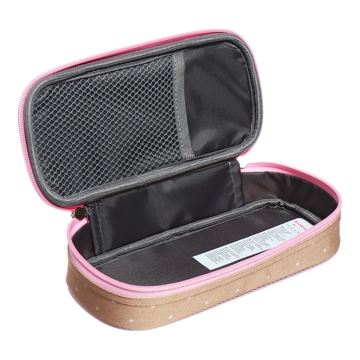 Этот вместительный пенал-футляр (21x5x10 см) выполнен в классической форме параллелепипеда с закругленными углами. Материал пенала – износостойкий и прочный 100% полиэстер 600D. Модель также снабжена надёжной молнией с мягким ходом. У пенала внутри есть сетчатый карман для мелкой канцелярии, а между наружной тканью и подкладом имеются пластиковые вставки для дополнительной прочности. В пенал помещается практически всё необходимое для школьных занятий.