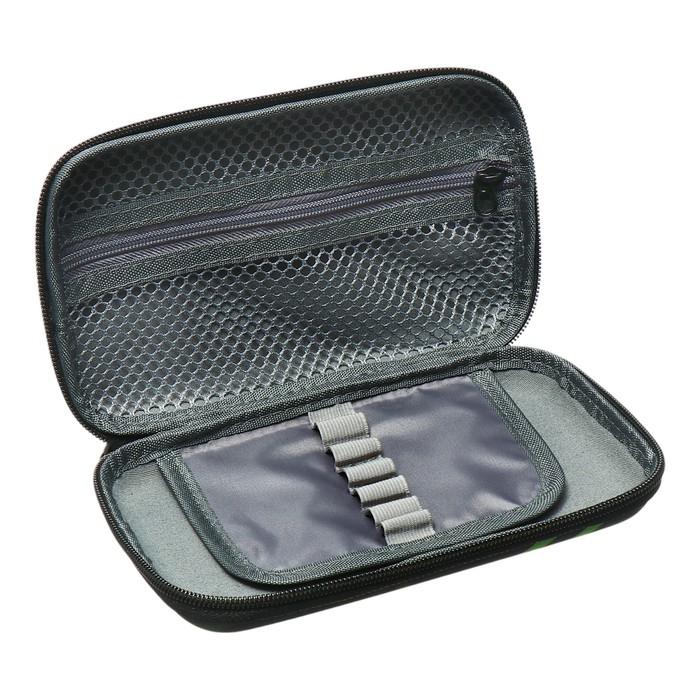 Пенал-футляр 85 х 210 х 50 мм с откидной планкой, мягкий, текстильный, Оникс, ПМК 24-42 Black, чёрный/ярко-салатовый