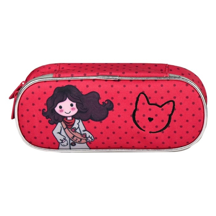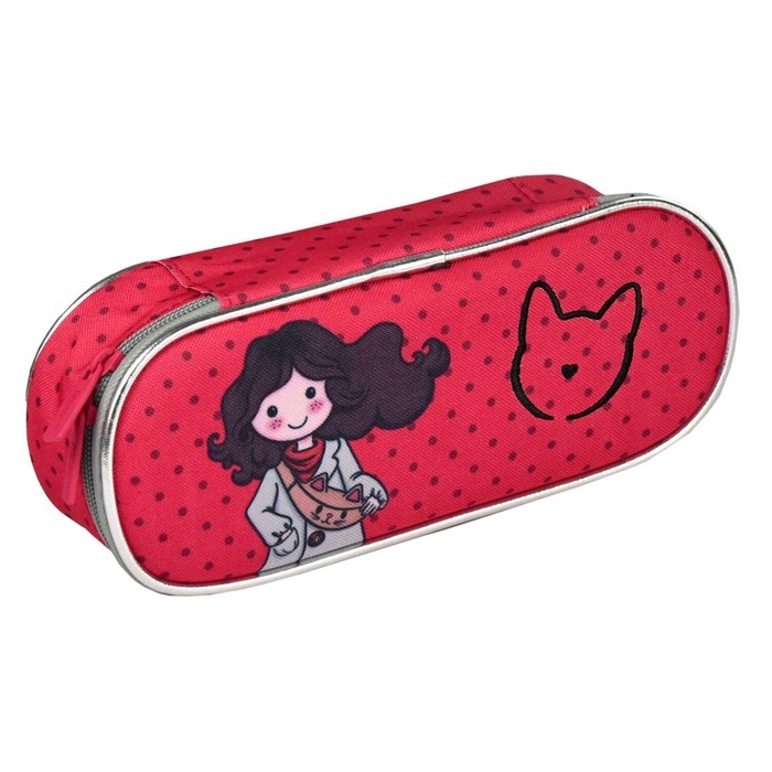 Пенал. ДЕВОЧКА С КОТОМ. Материал: полиэстер. Комплектность: без наполнения. Размер: 22х8.5х5.5 см. Количество отделений - 1. Застёжка - молния. Материал собачки: металл с покрытием "софт-тач". Форма собачки - брендированная собачка. Отделка: вышивка гладью, сублимационная печать. Особенности: внутренний карман. Крепления для канцелярских принадлежностей: нет. Подклада: есть. Индивидуальная упаковка: ПЭТ-пакет.